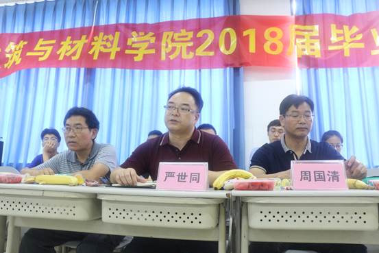 建筑与材料公司党总支严世同书记向2018届毕业生顺利毕业表示衷心祝贺,并希望毕业生代表就学院未来的发展给予一些建设性意见。