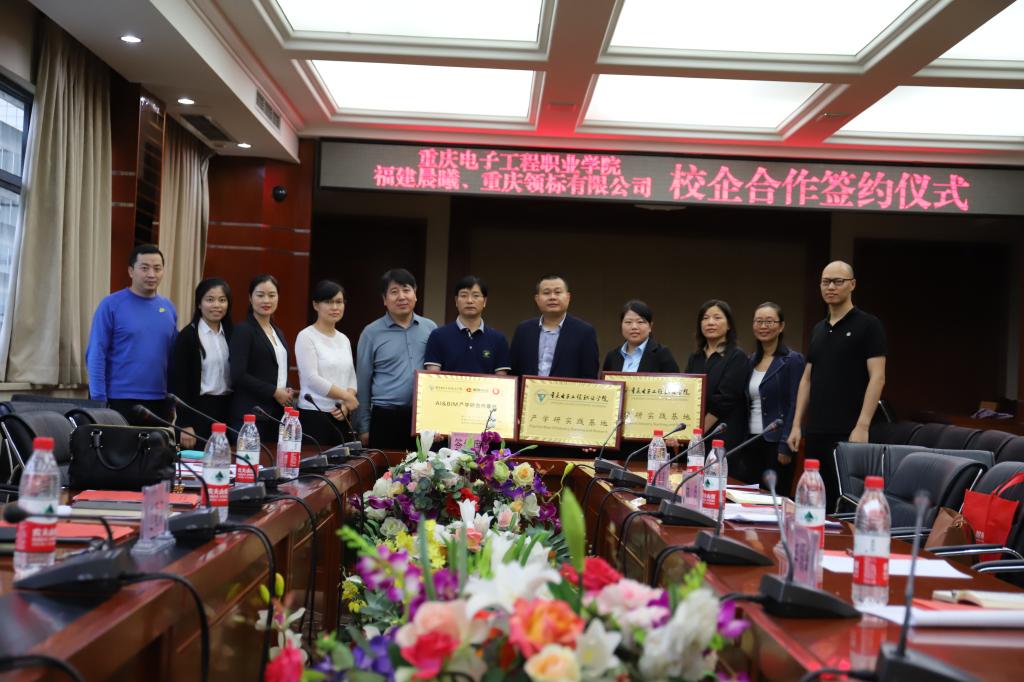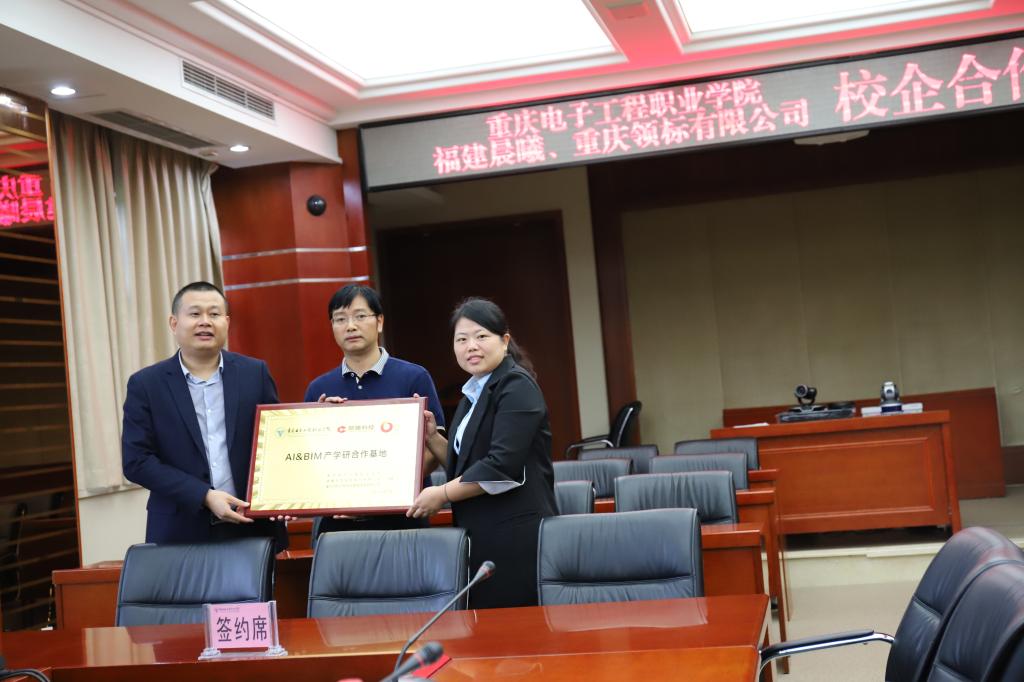 首先由周国清经理致欢迎词并简要介绍了学校办学和校企合作情况,谭莉经理介绍了福建省晨曦信息科技股份有限公司发展情况,林兵总经理也介绍了重庆领标工程项目管理咨询有限公司发展情况以及人才需要情况,边凌涛副经理作了总结发言,表达了长期合作的愿景。协议签字后,双方就项目运行思路、管理方案和人才培养方案进行了深入的交谈;重庆电子工程职业学院授予福建省晨曦信息科技股份有限公司、重庆领标工程项目管理咨询有限公司“产学院教育基地”牌匾;福建省晨曦信息科技股份有限公司、重庆领标工程项目管理咨询有限公司授予重庆电子工程职业学院“晨曦AI&BIM教学实践基地”牌匾。