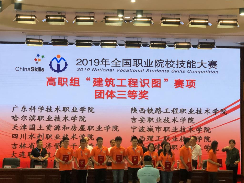 日前,由教育部等35个部委(单位)联合主办的2019年全国职业院校技能大赛“建筑工程识图”赛项在天津城市建设管理职业技术学院圆满落下帷幕,来自五湖四海的105支高职院校队伍参加了此次竞赛。太阳成集团tyc122cc杨桔、赵磊同学在钟伟老师和廖艳老师的指导下组成团队,与来自全国的选手们同场竞技,比拼实力。经过5个小时的激烈角逐,公司参赛选手以良好的心理素质、扎实的专业技能、齐心协力的团队精神,最终荣获全国职业院校技能大赛“建筑工程识图”赛项团队三等奖。
