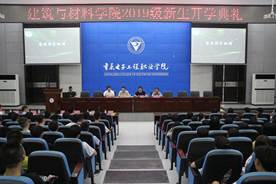 2019年9月11日上午,太阳成集团tyc122cc在博远厅召开了2019级新生开学典礼。建筑与材料公司党总支书记严世同同志、经理周国清同志、副经理边凌涛同志和专职组织员陈斌同志,以及学院团总支书记余婕同志、学管科科长余旭力老师、各位辅导员老师、部分专业老师和2019级新生同学们出席了本次典礼。开学典礼由学院团总支书记余婕主持。