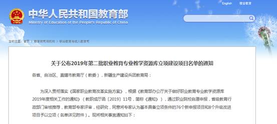2019年11月,教育部职业教育与成人教育司发布了《关于公布2019年第二批职业教育专业教学资源库立项建设项目名单的通知》(教职成司函〔2019〕100号)文件,公司主持的建筑智能化工程技术专业教学资源库,经过近两年的努力,获批正式立项。