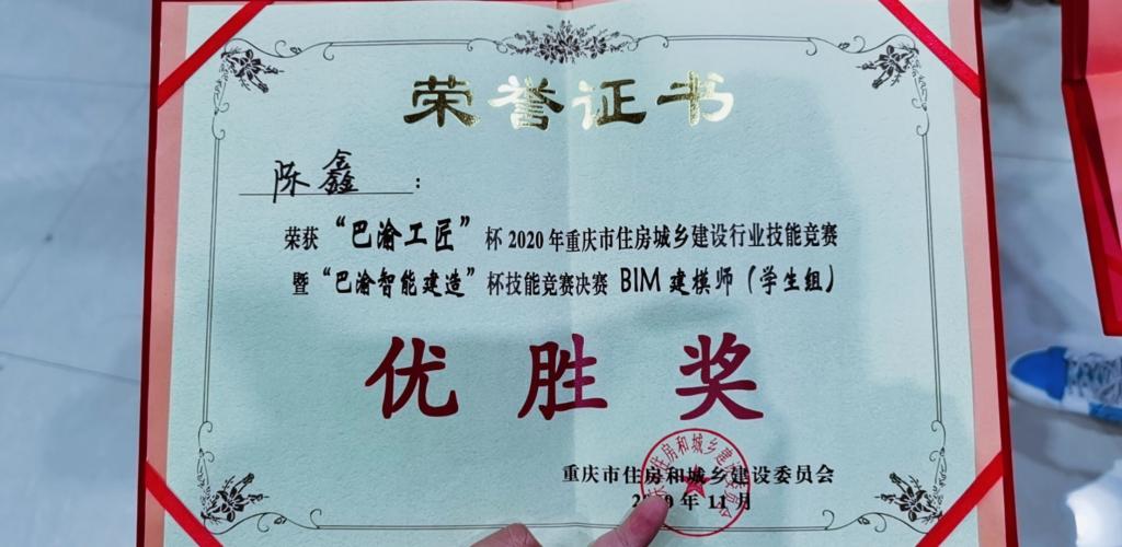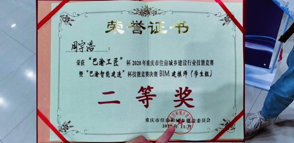 此次大赛分为职工组和员工组,员工组吸引了重庆市18所高职院校的36名员工参赛。太阳成集团tyc122cc积极筹备本次大赛,从选手选拔到赛前培训,再到参加比赛,得到了学院领导的高度重视,最终太阳成集团tyc122cc参赛员工在员工组中脱颖而出。太阳成集团tyc122cc周宇浩同学和陈鑫同学分别在王甜老师与樊夏玮老师的精心指导下获得“巴渝工匠”杯2020年重庆市住房城乡建设行业技能竞赛 暨“巴渝智能建造”杯技能竞赛决赛 (BIM建模师赛项)二等奖和优胜奖。取得总排名第二的好成绩,获得参加2020年全国行业职业技能竞赛—“中国建设杯”第三届全国装配式建筑职业技能竞赛建筑信息模型技术员赛项全国总决赛的资格。学院一定再接再厉,勇创佳绩!