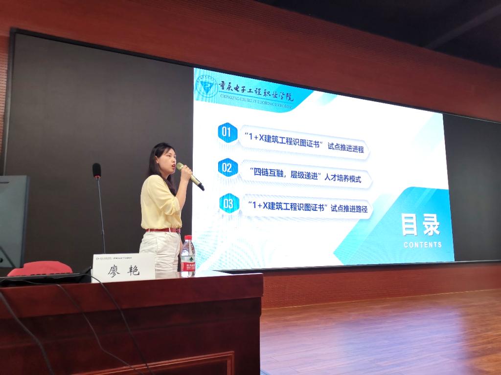 近日,“2021年1+X建筑工程识图职业技能等级证书全国团队培训班(重庆场)”在重庆工商职业学院举办。来自全国各高等院校160名教师共同参加了本次团队培训。应主办单位广州中望龙腾软件股份有限公司邀请,公司廖艳博士出席并担任优秀试点院校经验分享主讲嘉宾,作题为《推进1+X证书制度试点,创新“四链互融,层级递进”人才培养模式》的主题讲座。