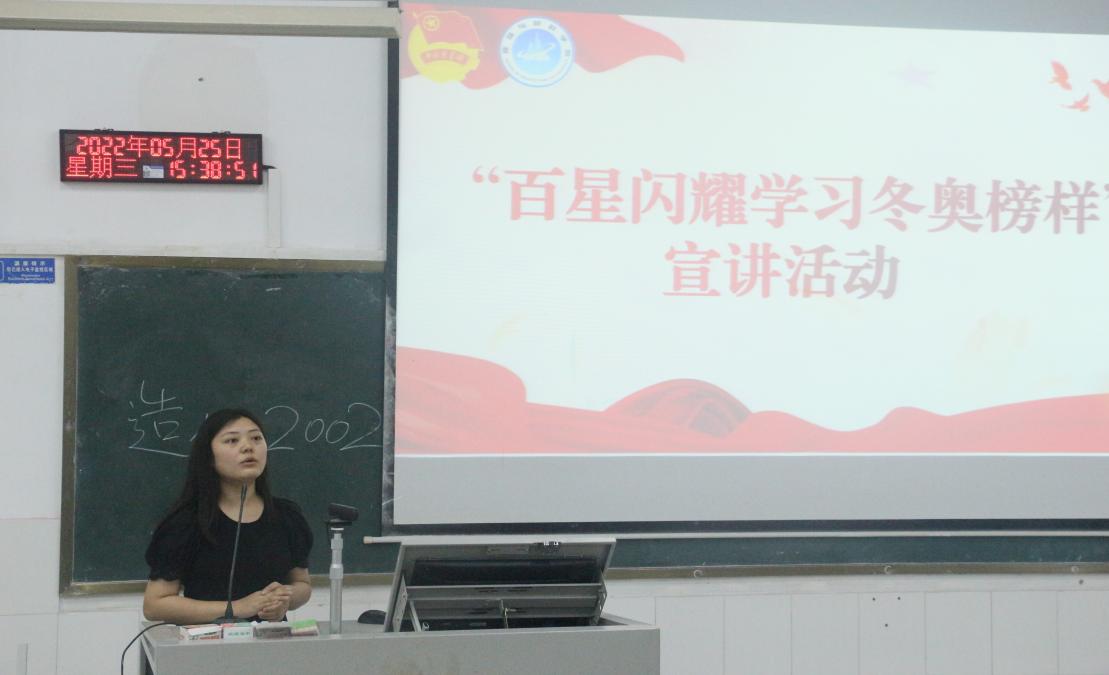 2022年5月25日,建设工程管理类辅导员杨雪原在7-209为本专业员工开展了“冬奥榜样”宣讲。