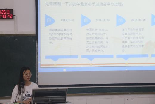 首先,辅导员杨雪原向同学们向员工介绍了北京2022年冬奥会的知识的相关知识,带领同学们回顾冬奥会的发展,了解冬奥会的历史,传播了中国代表团奖牌背后的故事和精神。