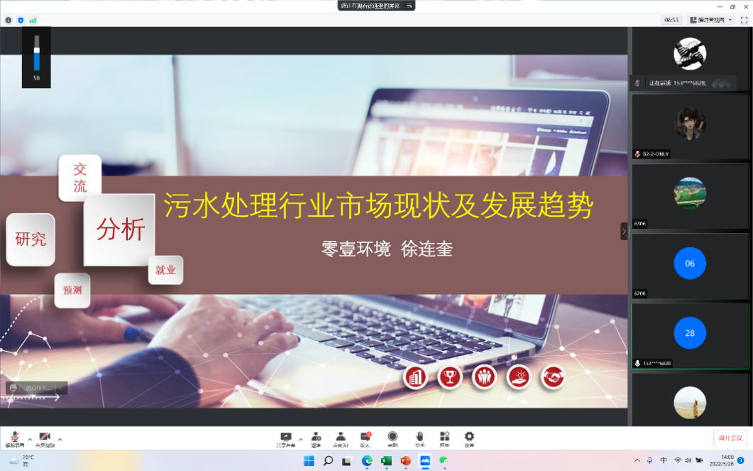 2022年5月26日上午,重庆市零壹环境有限公司高级工程师徐连奎在6栋教室为材料工程技术专业2101、2102、2001、2002班级员工开展了“污水处理行业发展现状及展望”线上线下结合的专题讲座。