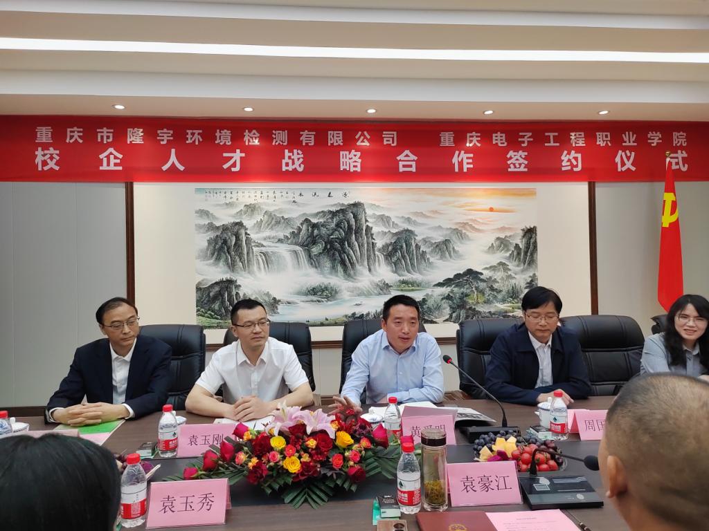 重庆市隆宇检测有限公司总经理袁豪江对公司师生的到来表示热烈欢迎。会上,袁豪江总经理为重庆电子工程职业学院领导及师生们介绍了重庆市隆宇检测有限公司的发展历程及主营业务。副董事长黄爱明介绍了学校在深化产教融合、科教融汇、职普融通上做出的积极探索,以及与永川合作共建“产城职创”融合发展试验区,助力西部职教高地建设的美好愿景。双方均表示,未来将在专业建设、人才引进及技术研发等领域进一步增强合作,并于现场签署校企人才战略合作协议。