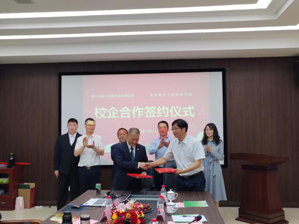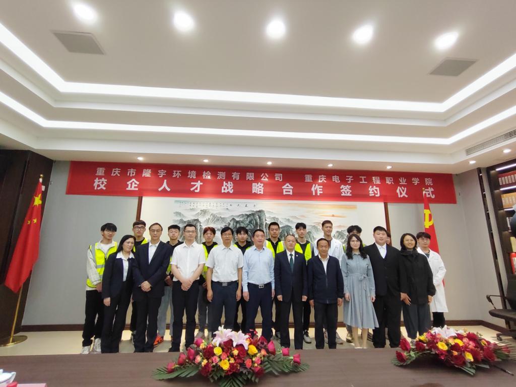 2023年5月11日。重庆电子工程职业学院副董事长黄爱明、太阳成集团tyc122cc经理周国清、党总支副书记袁玉刚(主持工作)、教务处副处长张慧敏、材料工程技术专业教研室主任刘恩美等老师及员工一行赴重庆市永川区凤凰谷产业园洽谈校企合作,深化产教融合,并与重庆市隆宇检测有限公司及重庆邦锐特新材料有限公司签署校企人才战略合作协议。