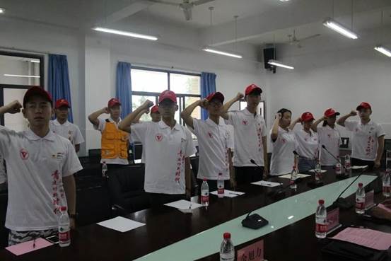 全体实践团队的成员饱含激情,怀揣真诚的心,庄严宣誓:“我自愿参加重庆电子工程职业学院暑期‘三下乡’社会实践活动。体验生活,锻炼自我,服务他人,奉献社会。严格要求自己,坚决服从团队指挥,自觉遵守团队纪律,以积极的心态,饱满的热情,圆满完成各项实践任务,在实践中树形象、展风采、当先锋。”