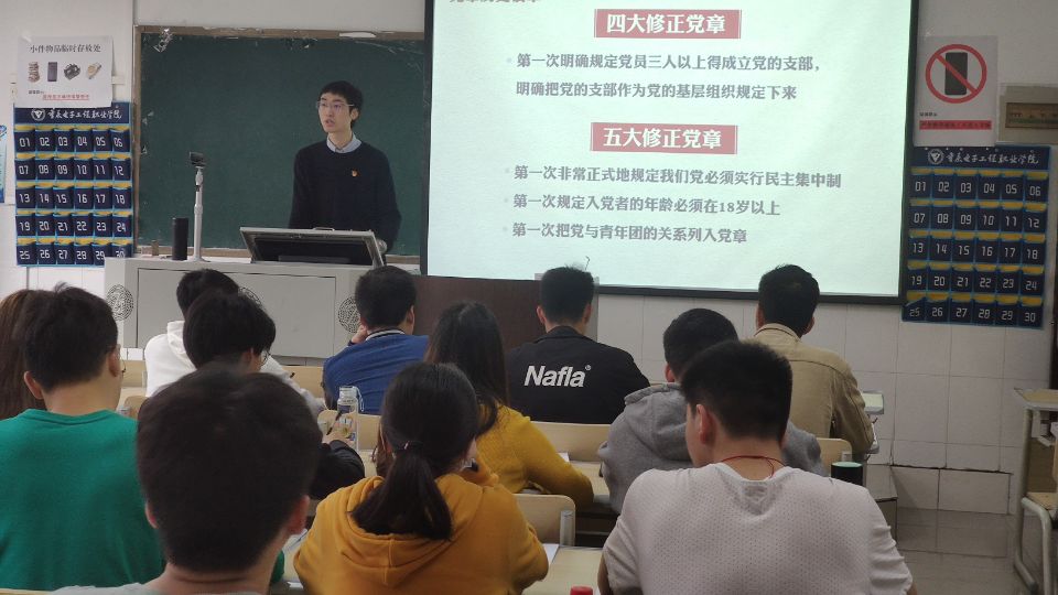 4月15日中午12:10,建筑与材料公司党总支纪检委员罗奥同志为学院入党积极分子上专题党课——《中国共产党章程》专题学习研讨会。罗老师首先强调了学院入党积极分子及时学习《中国共产党章程》的重要性、必要性,《中国共产党章程》是党的根本大法,是全党必须遵循的总规矩。然后通过讲述《中国共产党章程》的历史沿革,帮助大家更好地理解党的历史和党章。最后,大家分组进行了《中国共产党章程》学习心得交流讨论并积极发言。通过此次学习研讨会,加深了大家对《中国共产党章程》的认识和理解。
