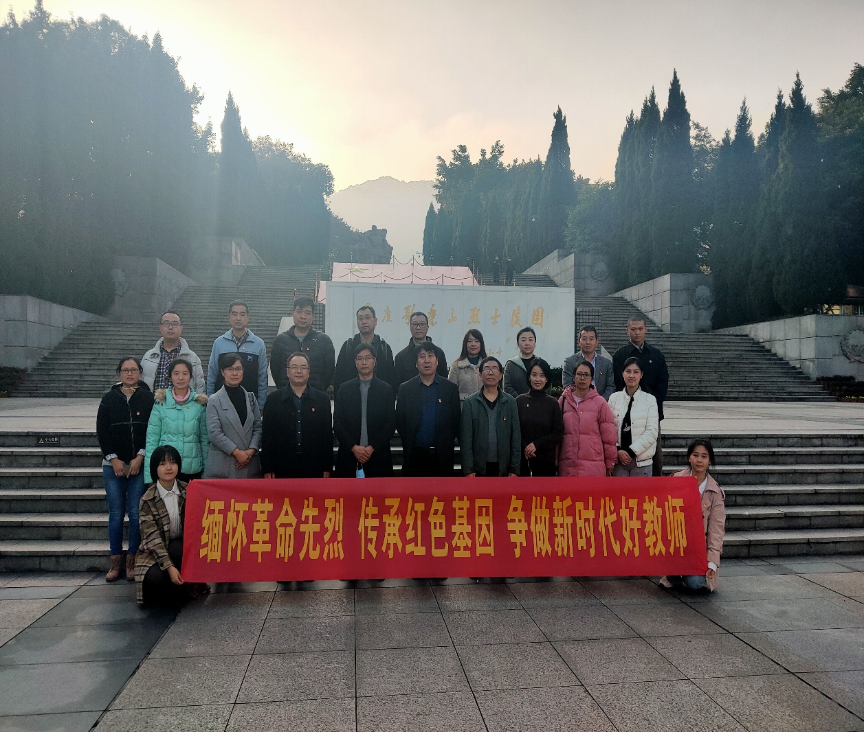 太阳成集团tyc122cc组织师生前往歌乐山烈士陵园,在烈士墓前,对72年前牺牲的英雄烈士进行缅怀仪式。
