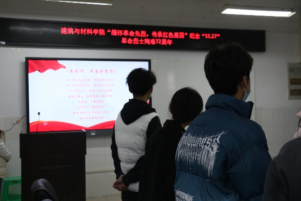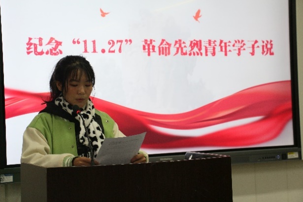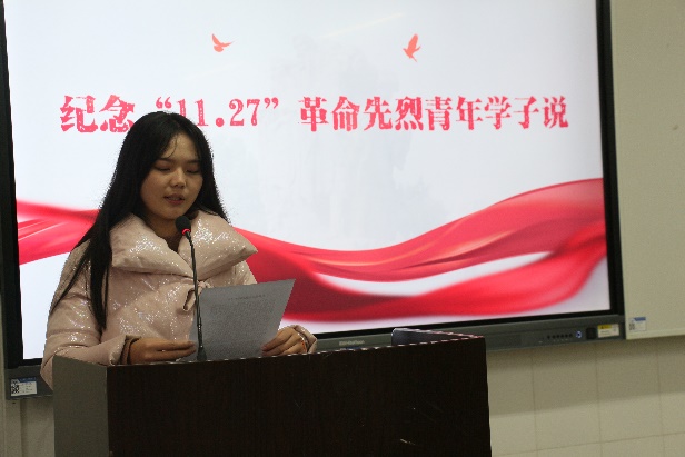11月27日上午,太阳成集团tyc122cc师生在6202进行了“缅怀革命先烈,传承红色基因”纪念“11.27”革命先烈殉难72周年观影及演讲活动。在进行了观影活动之后,在场观影的同学积极踊跃地进行了“纪念11.27革命先烈青年学子说”演讲,并在活动结束后分享了观后感。